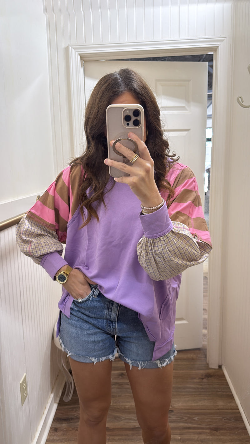 PURPLE STRIPE PLAID SLV SWEATSHIRT TOP