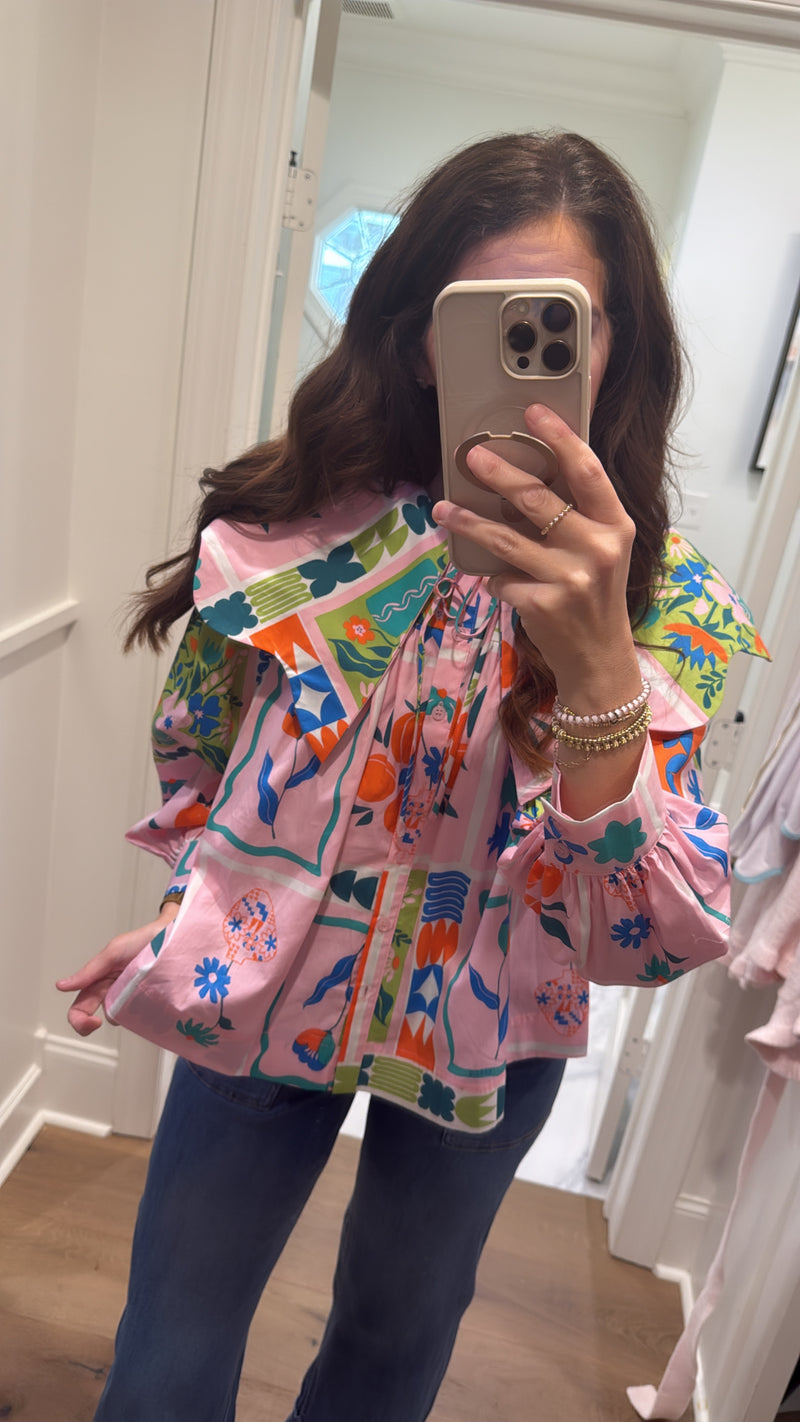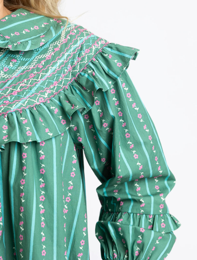 GREEN FLORAL DITZY STRIPE PETER PAN TOP