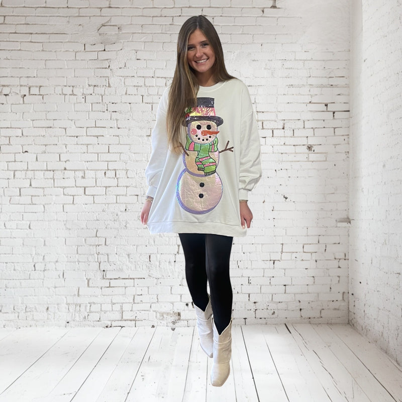 WHITE METALLIC OVERSIZED SNOWMAN SWEATSHIRT DRESS