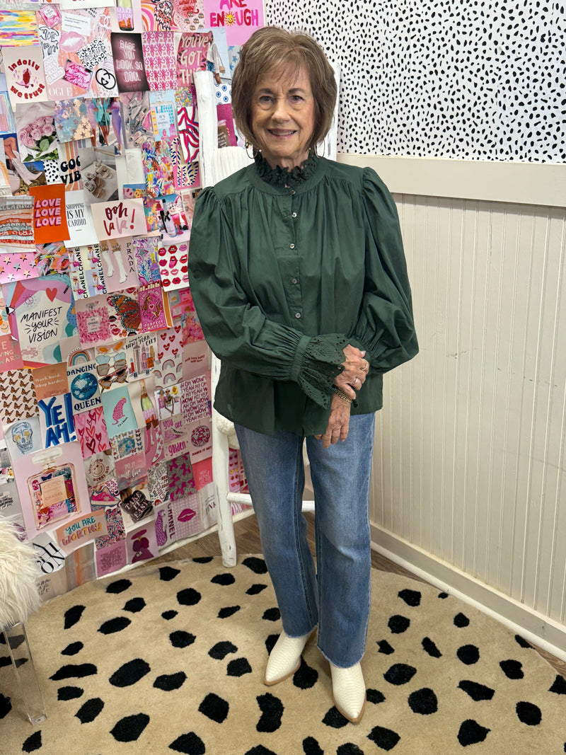 PAISLEY ELASTIC BUBBLE WAIST BLOUSE