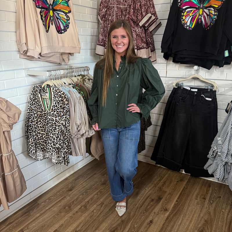 PAISLEY ELASTIC BUBBLE WAIST BLOUSE