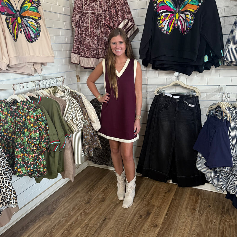 MAROON STRIPED SIGNATURE COLLARED TOP