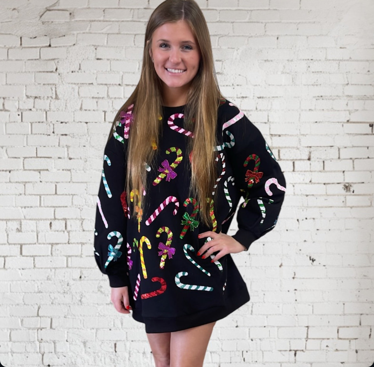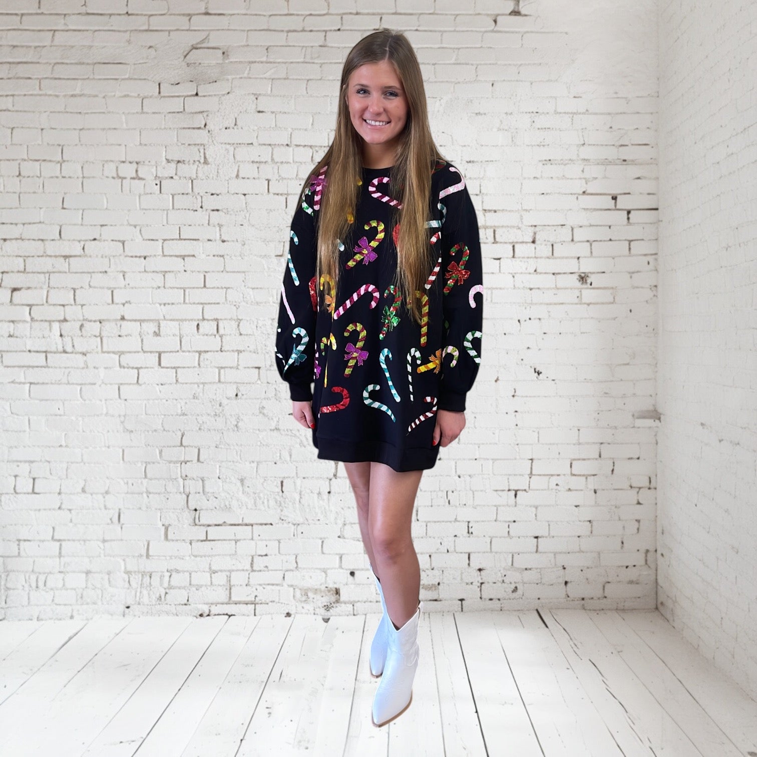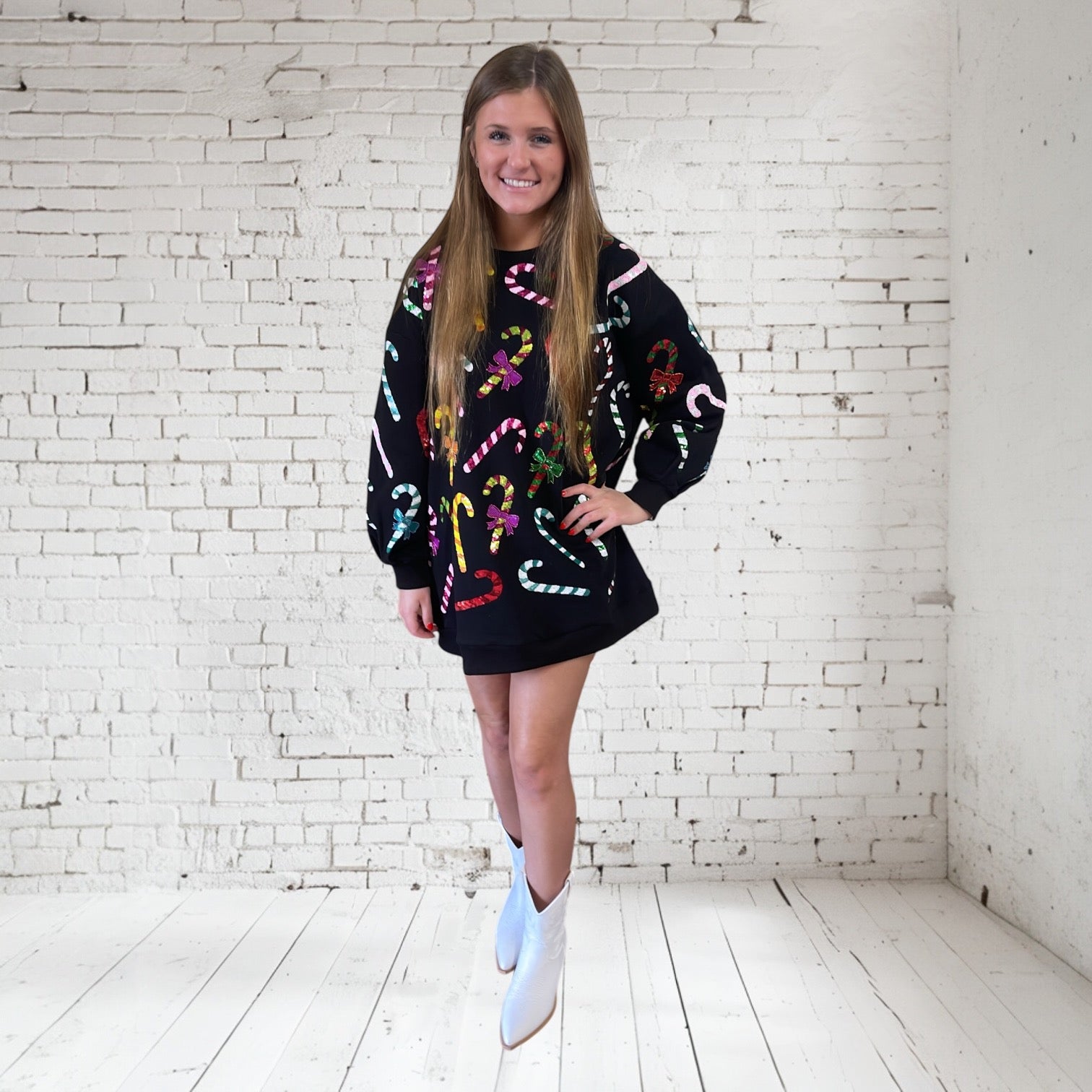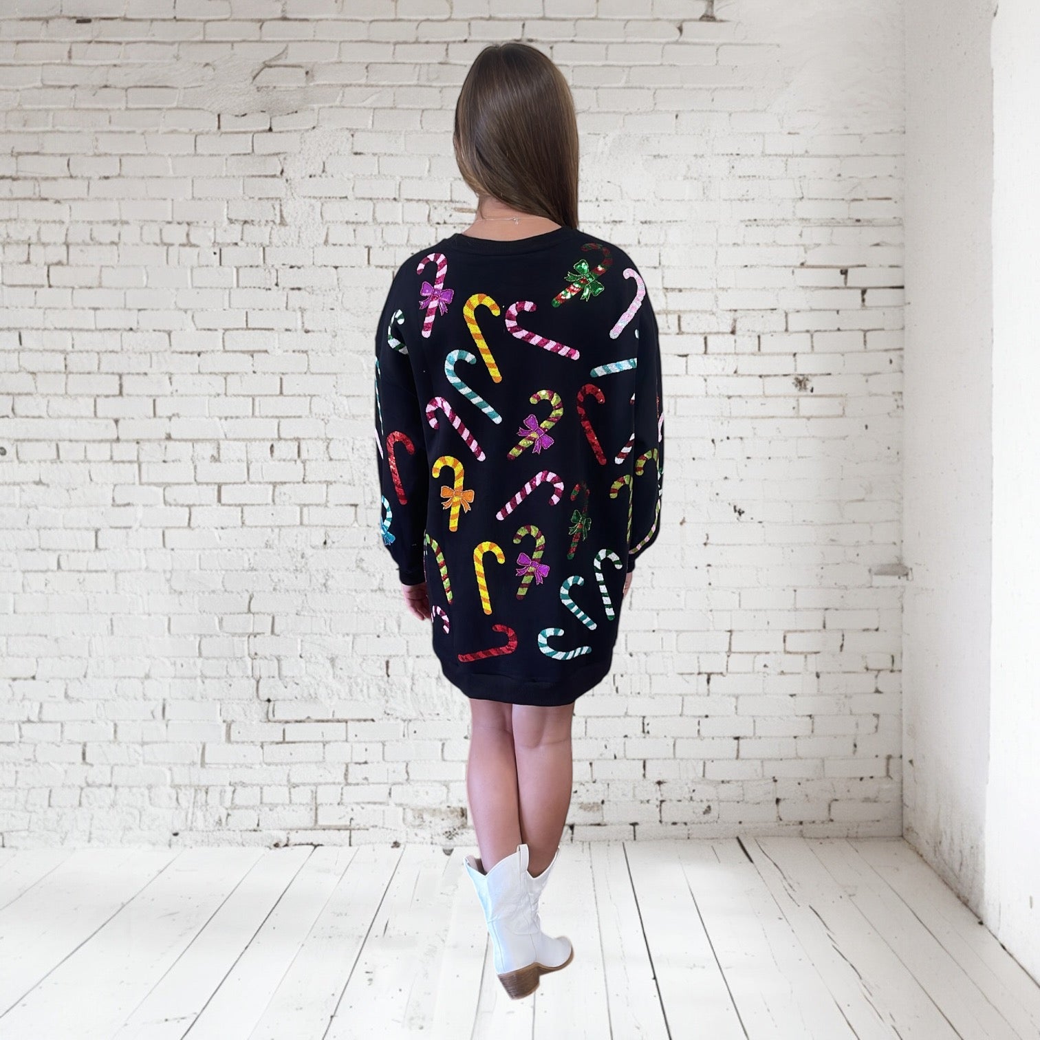 BLACK RAINBOW CANDY CANE SWEATSHIRT DRESS