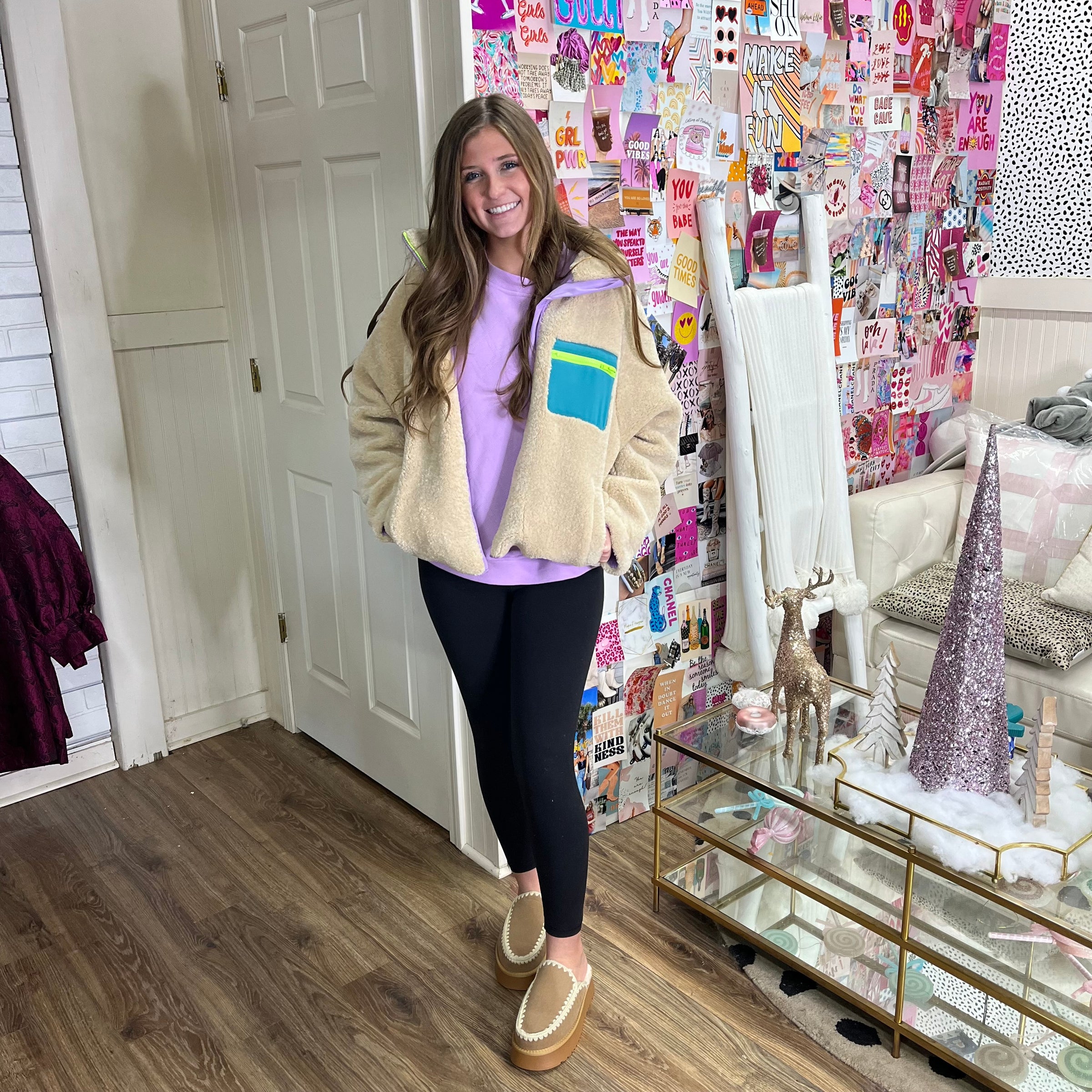 IVORY RETRO COLOR-BLOCK FLEECE JACKET