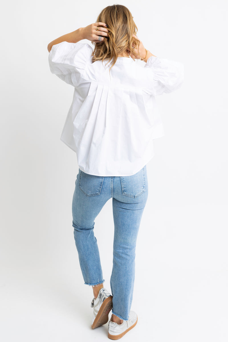WHITE PLEATED POPLIN TOP