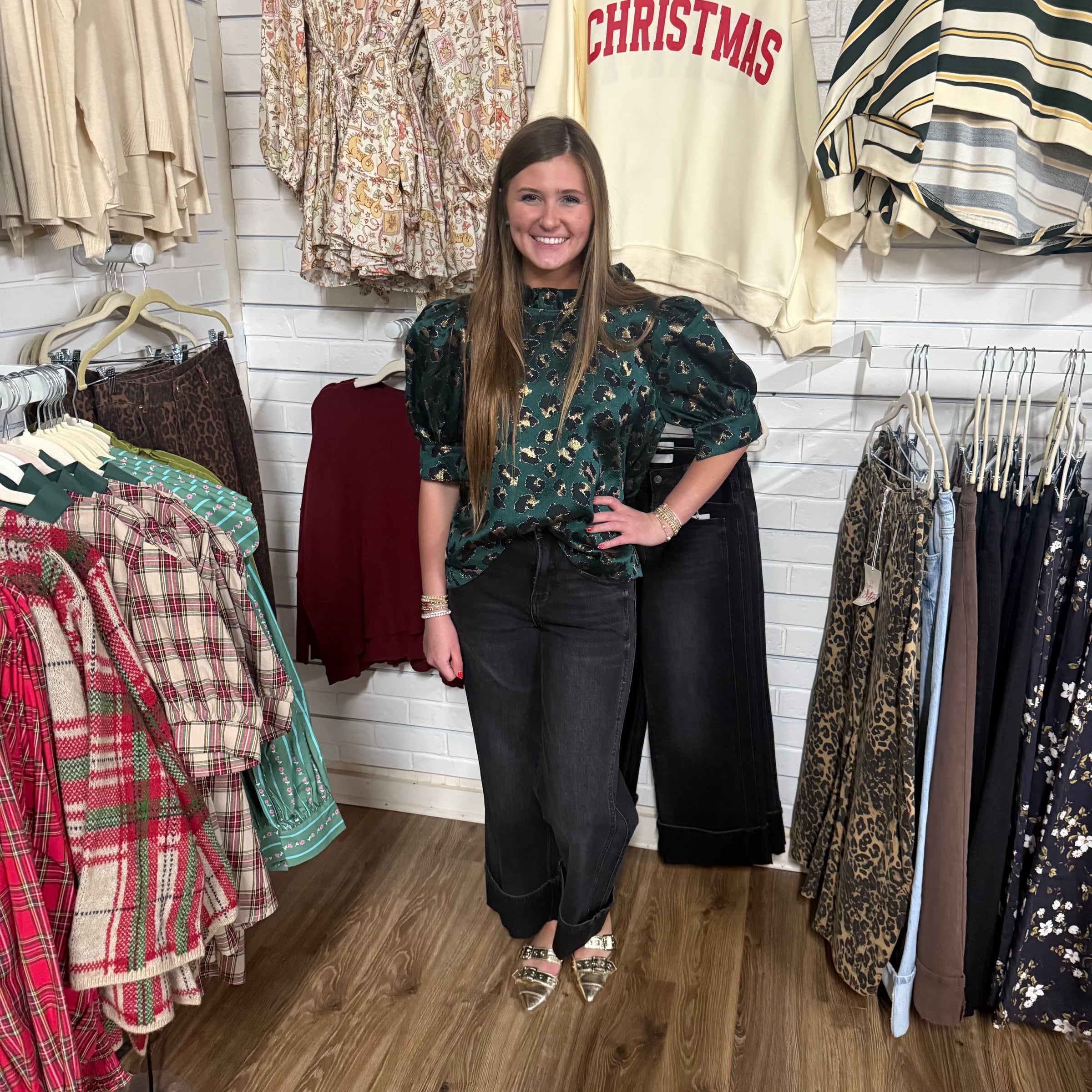 GREEN LEOPARD BUTTON BACK PUFF SLV